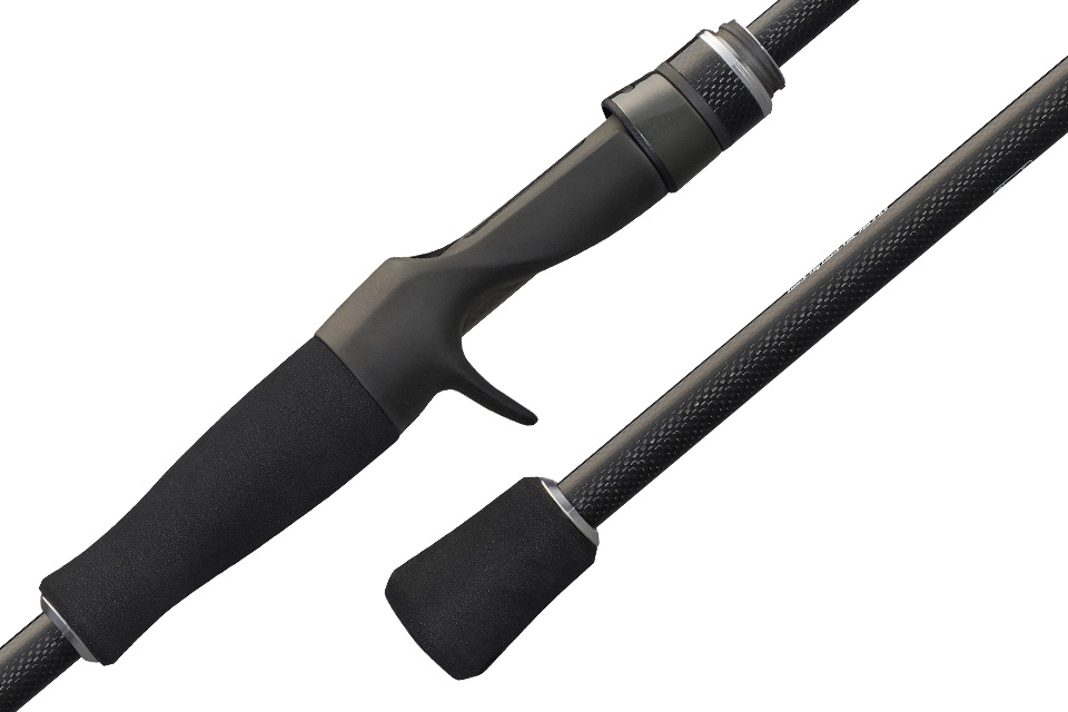 メインで採用したのは低・中弾性カーボン。部分的に高弾性カーボンを使い、全アイテム乗せのアクションを実現。バットセクションには「グラファイトクロスLV」を採用することにより、軽量化をはかりつつ、ねじれ・つぶれ剛性を最適なフィーリングに調整。
